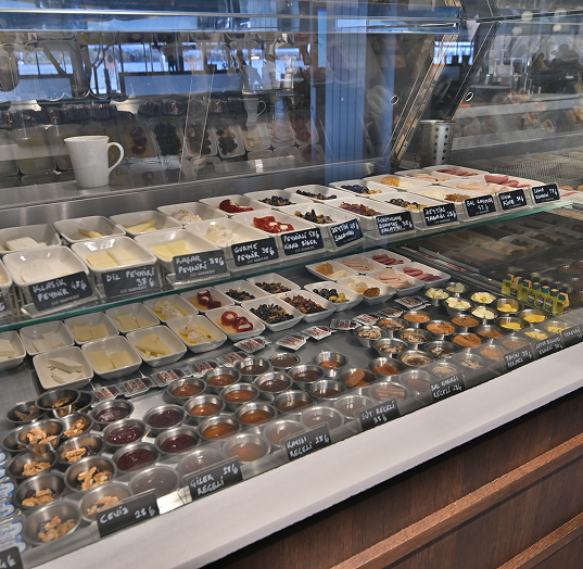 Sabah erken gelen misafirler için güne ferah bir başlangıç, geç uyananlar için ise doyurucu bir kaçamak sunan kahvaltı menümüz, her damak zevkine hitap eden seçeneklerle dolu. 08:00 – 16:00 saatleri arasında sunduğumuz geniş kahvaltı yelpazesiyle; Türk kahvaltısının geleneksel tatlarını da dünya mutfaklarından esintiler taşıyan alternatifleri de bir araya getiriyoruz. Her ürün, günlük ve taze olarak hazırlanıyor; açık mutfak konseptimiz sayesinde tüm süreç misafirlerimizin gözü önünde gerçekleşiyor.